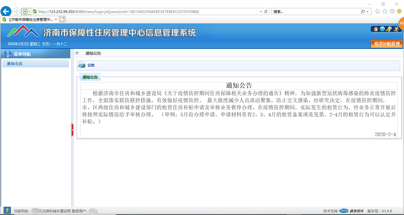 2020.02.05登錄租賃住房補(bǔ)貼申報系統(tǒng)僅有該通知無法申報補(bǔ)貼具體請查看當(dāng)天群公告.png